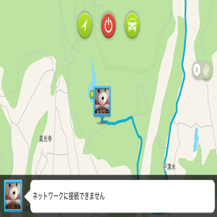 ところが、さらに進むと、突然電波がつながったようで、ハイドラのバッジが出現しました。この瞬間にCP取れて、次の瞬間、また圏外になりました。