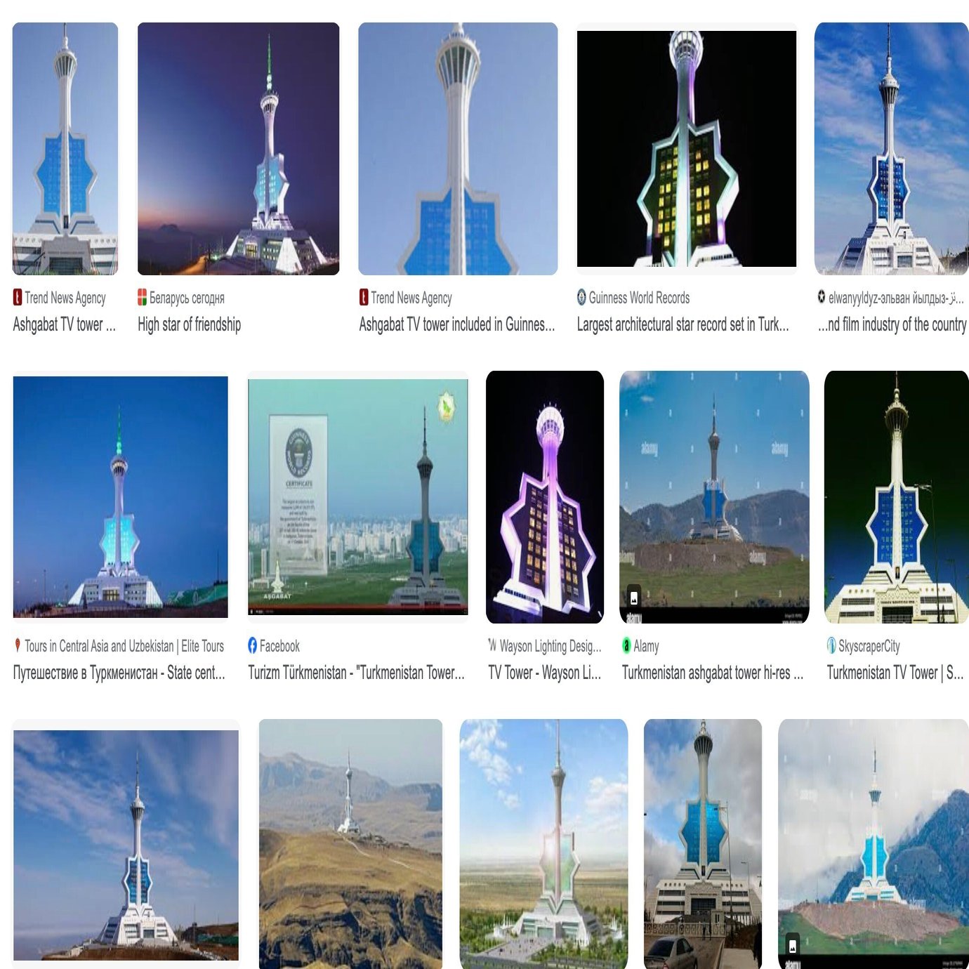 最大の建築記念碑(トルクメンのテレビ塔の「オグズハン・スター」)もギネスブックに登録されています。