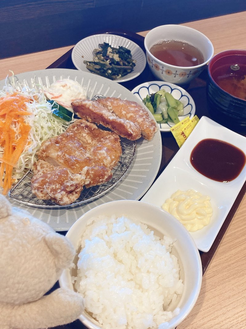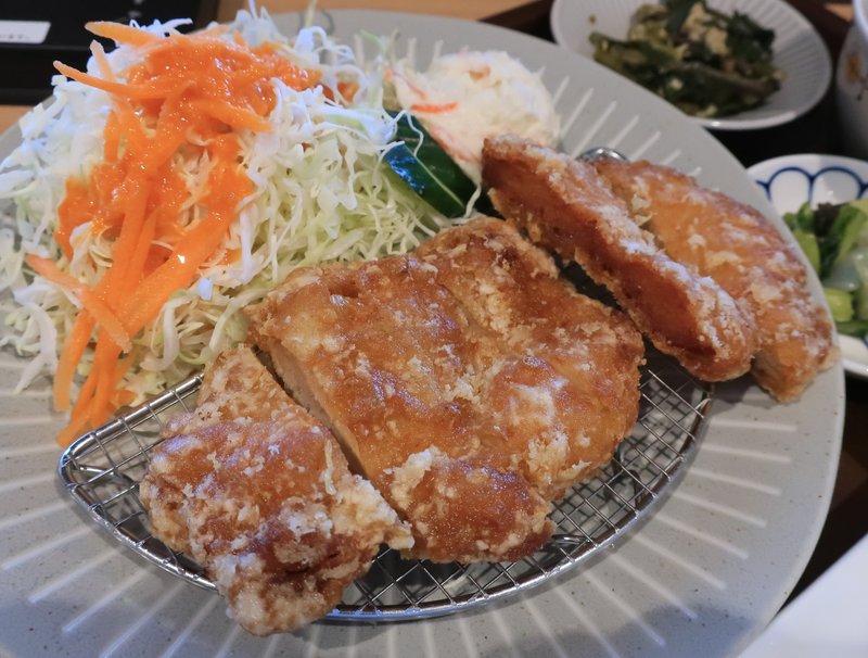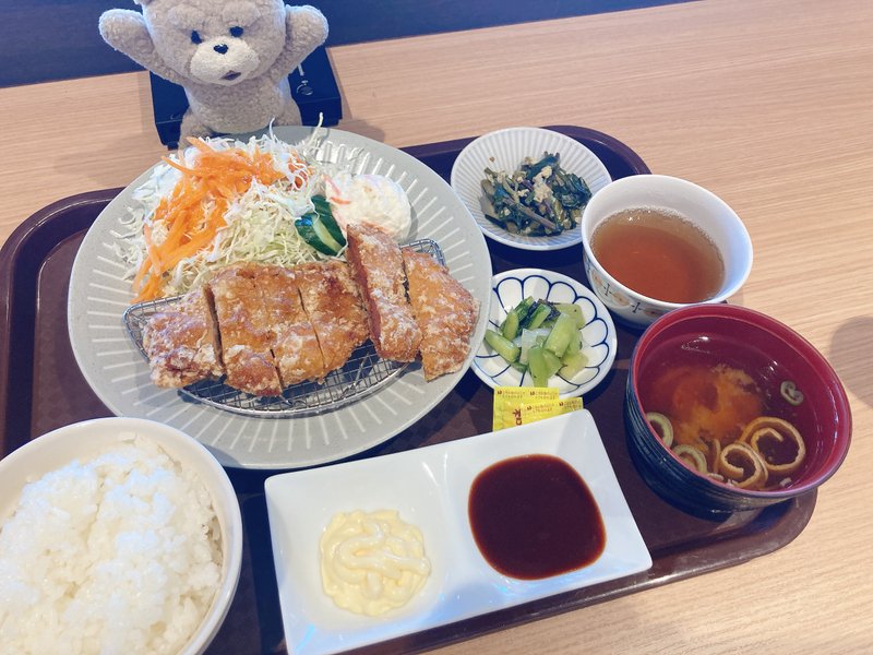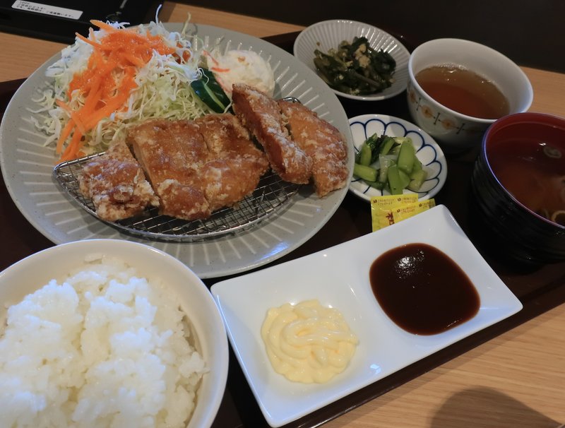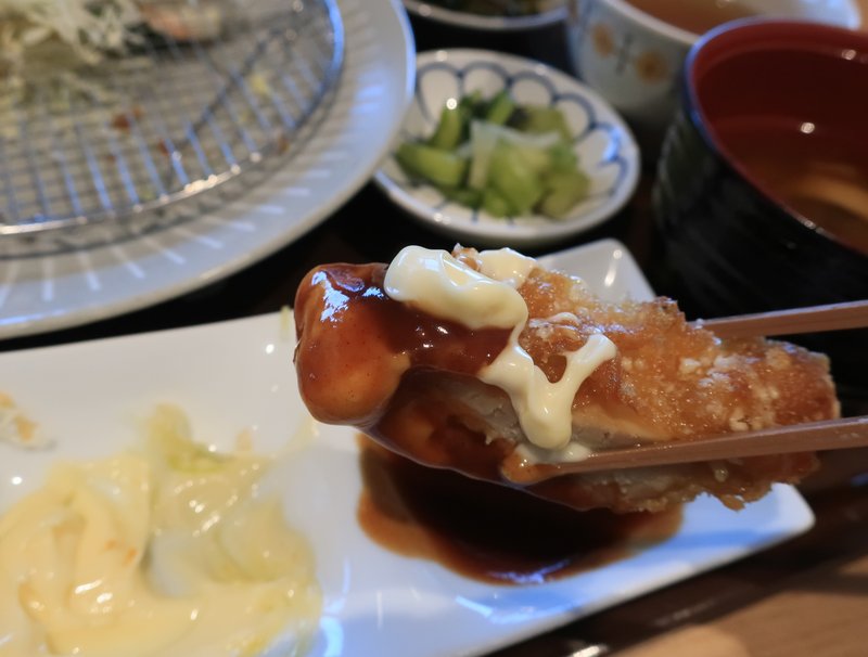 サクサクっとした歯ごたえ、鶏肉は醤油ベースの風味が広がり和風な美味しさです。ソースで味変してみました。