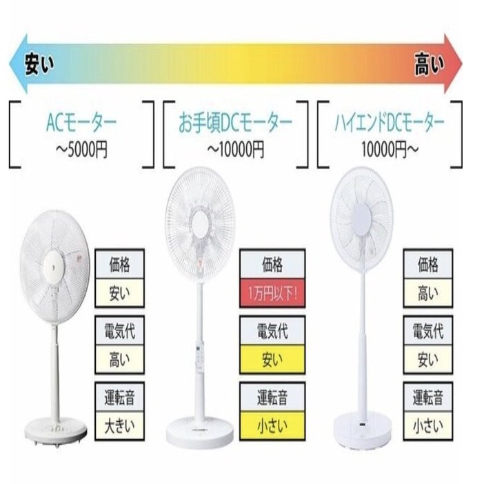 ACモーターの扇風機は、5000円前後で安いけど電気代が高い。