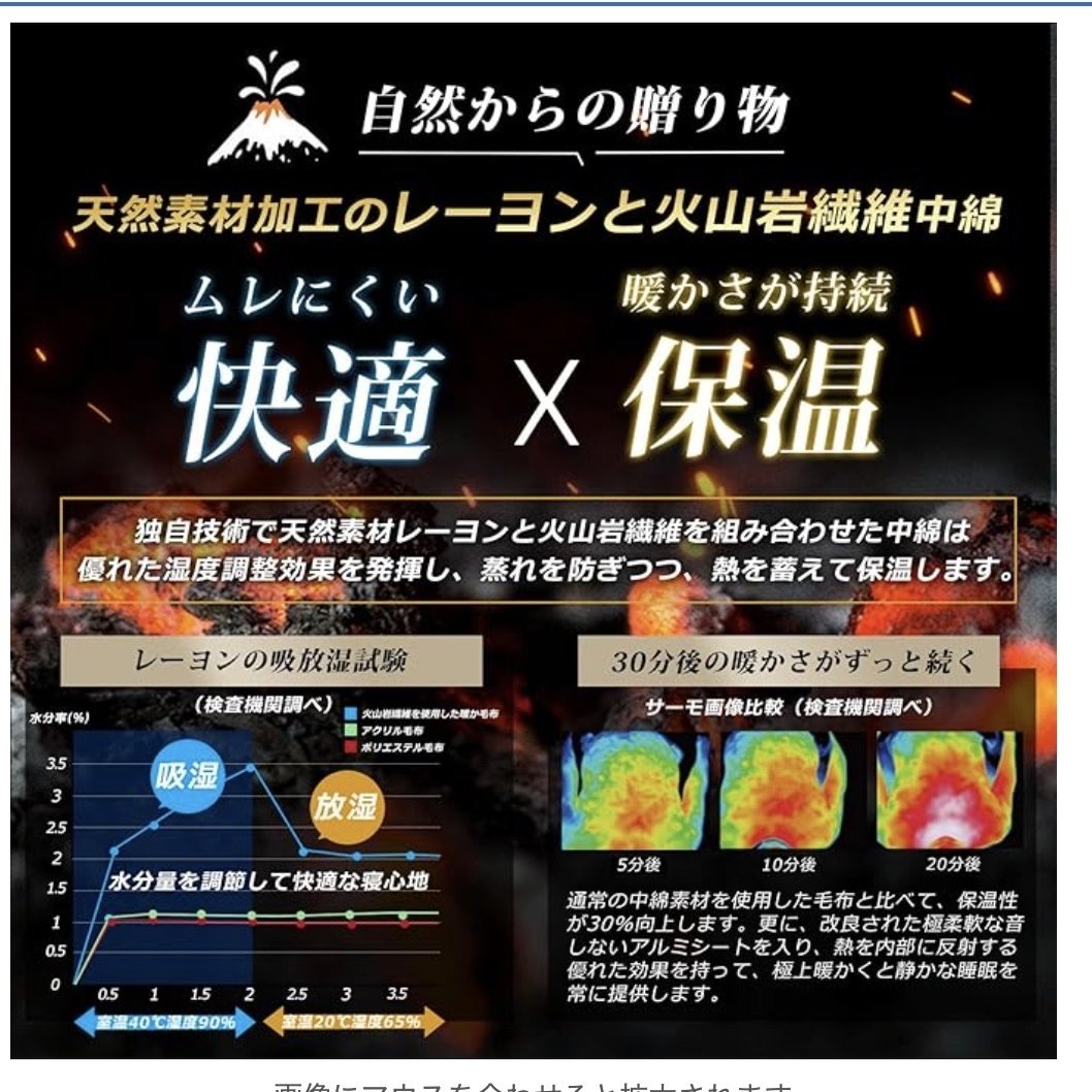 レーヨン&火山石入り中綿: 吸湿発熱&蓄熱保温で暖かさ持続
