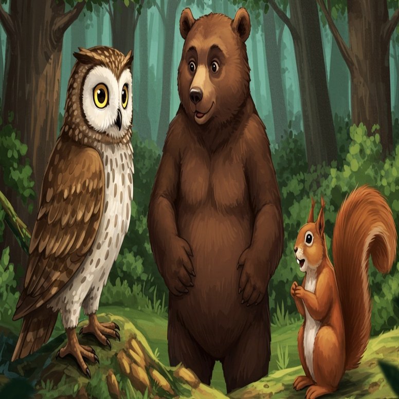 ある日、森の仲間たちが集まって、冬の食糧調達について話し合っていました。リスは木の実をたくさん集めるべきだと主張し、クマは冬眠に備えて体を大きくするべきだと訴えました。フクロウは自分の考えが正しいと信じていたため、他の動物たちの意見を聞き入れようとしませんでした。