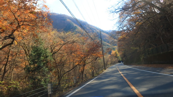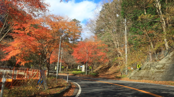 沿道も真っ赤な紅葉がでてきて山奥にすすんでいるかんじがします。