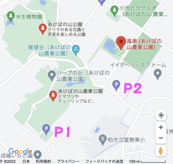 あけぼの山農業公園と風車の位置関係、GoogleMapの写真は間違い、2022-08